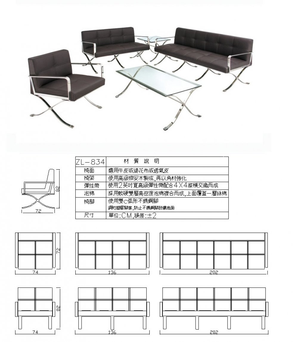 開啟上方區塊 高級辦公室沙發:德全辦公家具有限公司-辦公室空間規劃 商品首頁》 選擇商品分類 產品型錄最新實績 送出 高級皮革沙發椅 各式鐵櫃 工程實績 辦公室沙發 辦公各式椅子 會議桌 OA屏風 OA高隔間 辦公桌 傢俱 商品類型:銷售中商品 瀏覽次數:19289 < > 高級辦公室沙發 建立時間:2018-11-21 12:15:35 ZL-834椅面可依需求使用真牛皮、半牛皮等。若為價格考量當然以合成皮及布沙發最經濟實惠。 商品線上諮詢 商品說明 辦公沙發主要是指用在辦公室中的,接待客戶,公司開會等都會用到,辦公沙發集辦公與休閒於一體,以前的辦公沙發是純粹的辦公式,款式正式,坐感特別地不舒適,現在的辦公沙發經過改版,增強了沙發的舒適度與美觀度,實現了真正的辦公休閒式沙發,既給辦公室增加了活力,坐感又特別的舒適,無論是與員工談心,還是與客戶談業務,都將是一份享受。 商品規格說明 商品保證說明 本公司產品有800萬產險,保固一年