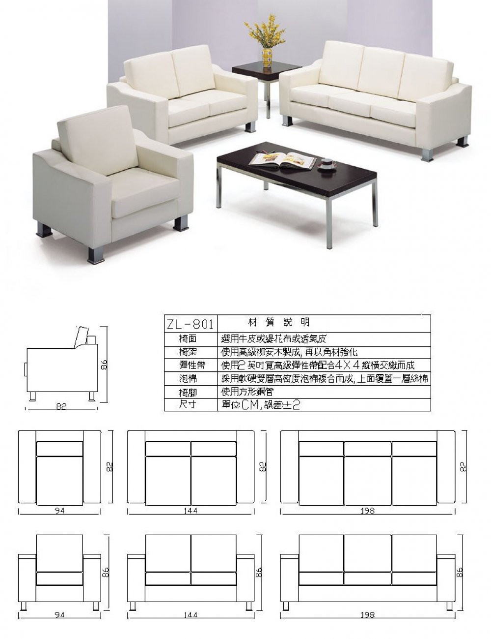 開啟上方區塊 高級辦公室沙發 ZL-801:德全辦公家具有限公司-電腦桌 商品首頁》 選擇商品分類 產品型錄最新實績 送出 高級皮革沙發椅 各式鐵櫃 工程實績 辦公室沙發 辦公各式椅子 會議桌 OA屏風 OA高隔間 辦公桌 傢俱 商品類型:銷售中商品 瀏覽次數:21829 < > 高級辦公室沙發 ZL-801 建立時間:2018-11-21 12:35:07 ZL-801椅面可依需求使用真牛皮、半牛皮等。若為價格考量當然以合成皮及布沙發最經濟實惠。 商品線上諮詢 商品說明 辦公沙發主要是指用在辦公室中的,接待客戶,公司開會等都會用到,辦公沙發集辦公與休閒於一體,以前的辦公沙發是純粹的辦公式,款式正式,坐感特別地不舒適,現在的辦公沙發經過改版,增強了沙發的舒適度與美觀度,實現了真正的辦公休閒式沙發,既給辦公室增加了活力,坐感又特別的舒適,無論是與員工談心,還是與客戶談業務,都將是一份享受。 商品規格說明 商品保證說明 本公司產品有800萬產險,保固一年