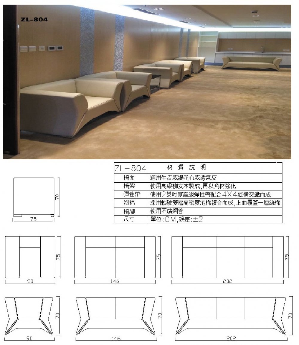 開啟上方區塊 高級辦公室沙發:德全辦公家具有限公司-辦公家具 商品首頁》 選擇商品分類 產品型錄最新實績 送出 高級皮革沙發椅 各式鐵櫃 工程實績 辦公室沙發 辦公各式椅子 會議桌 OA屏風 OA高隔間 辦公桌 傢俱 商品類型:銷售中商品 瀏覽次數:18753 < > 高級辦公室沙發 建立時間:2018-11-21 12:07:24 ZL-804椅面可依需求使用真牛皮、半牛皮等。若為價格考量當然以合成皮及布沙發最經濟實惠。 商品線上諮詢 商品說明 辦公沙發主要是指用在辦公室中的,接待客戶,公司開會等都會用到,辦公沙發集辦公與休閒於一體,以前的辦公沙發是純粹的辦公式,款式正式,坐感特別地不舒適,現在的辦公沙發經過改版,增強了沙發的舒適度與美觀度,實現了真正的辦公休閒式沙發,既給辦公室增加了活力,坐感又特別的舒適,無論是與員工談心,還是與客戶談業務,都將是一份享受。 商品規格說明 商品保證說明 本公司產品有800萬產險,保固一年